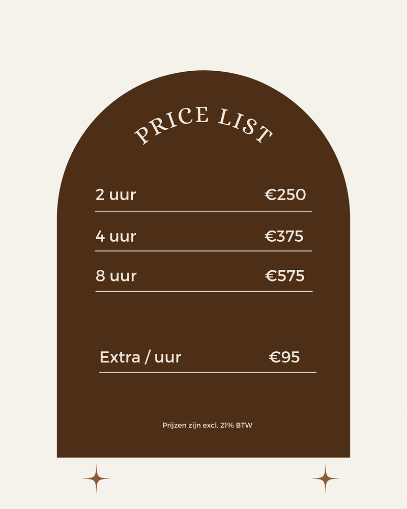 Dit is de basisprijs voor een shoot van 1 uur incl. 20 hoge resolutie beelden.